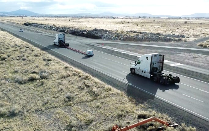 “Today a vehicle driving the road at highway speeds, about half that power, that energy, that motor is producing is used to overcome drag,” he said. “So you imagine two vehicles driving in close tandem behind each other, they can save a good amount of fuel by aerodynamic benefits and do it in a safe fashion.”