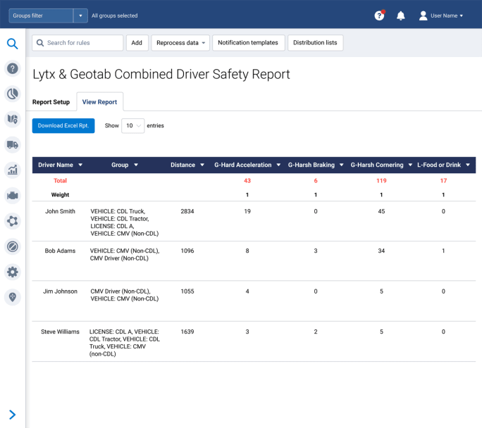 Assured Telematics’ Driver Safety Report combines a fleet operator’s real-time telematics data from Geotab with the joint customer’s Lytx data to provide insights on driver safety records.