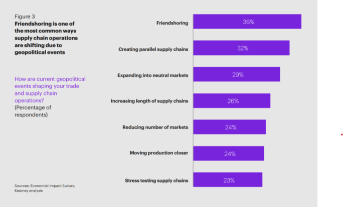 The first thing CEOs said they were looking at is “friendshoring” — switching to suppliers in countries that are aligned politically, at 36%.