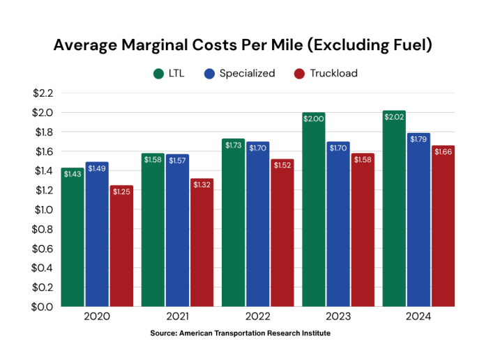 When lower fuel costs are excluded, marginal costs rose 3.6% to $1.779 per mile.