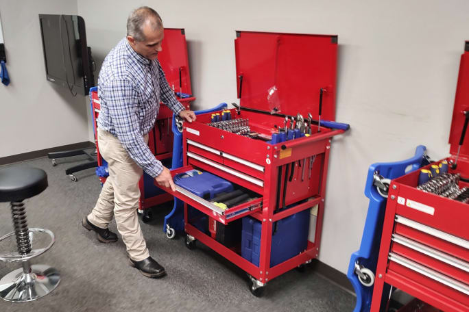 Terry Rivers shows the $20,000 worth of tools that FleeTec Academy graduates keep if they stay with the company for two years.
