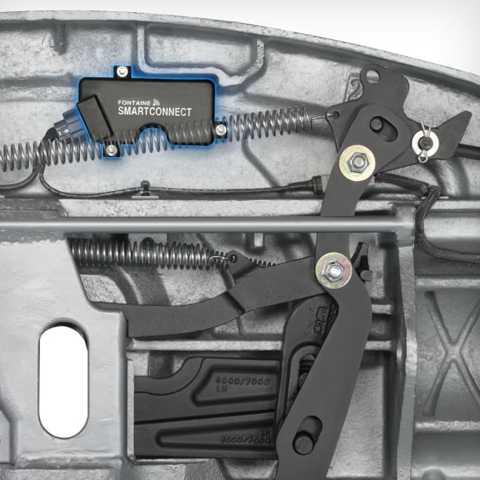 The Fontaine SmartConnect fifth wheel monitors the fifth wheel lock position at every coupling event and analyzes the gathered data.