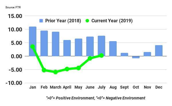 FTR's Trucking Conditions Index pushed into positive territory in July.