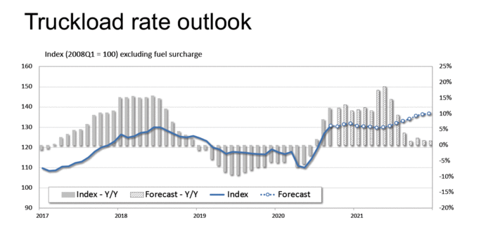 The huge increases in freight volume since the economic contraction are slowing, but the trucking industry still looks to see a strong 2021 in terms of both demand and rates.