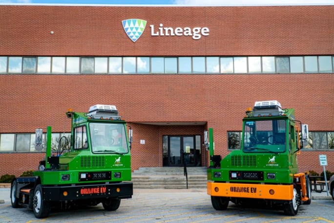 Orange EV trucks use electricity and have a maximum powertrain efficiency of more than 90%. At the Lineage sites in Kansas, Hirschbach operates Orange EV yard trucks up to 20 hours a day, six days a week. Under these heavy-use conditions, switching from diesel to electric eliminates more than 100 tons of carbon dioxide per truck annually along with diesel particulate matter, nitrogen oxides, and other pollutants emitted as a result of diesel combustion, according to the announcement.