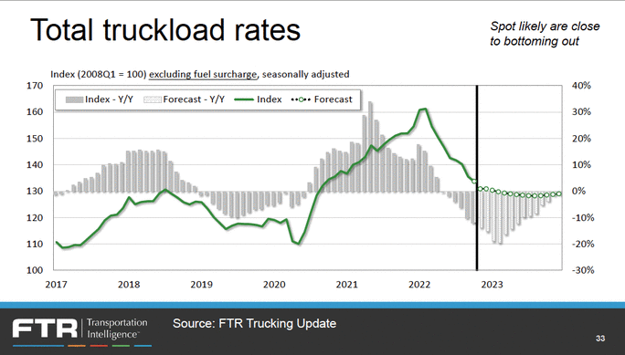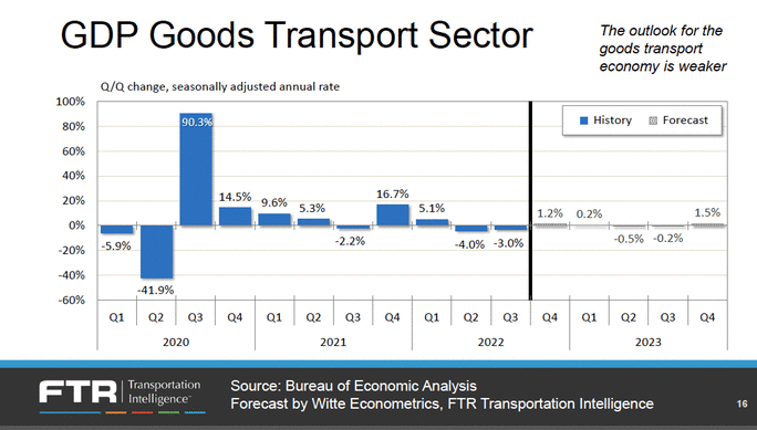 “FTR is not forecasting negative GDP” for 2023, Vise said, although that could change in its next forecast.