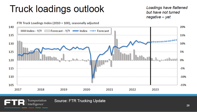 FTR's current forecast for truck loadings is essentially running flat. That could be revised downward to small negative numbers.