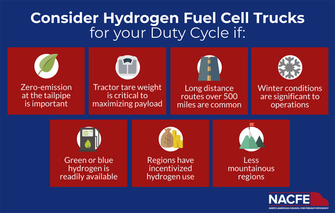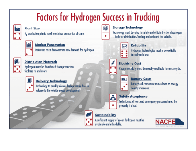 That's one of the central conclusions found in a wide-ranging guidance report on hydrogen fuel cell powered trucks just released by the North American Council for Freight Efficiency. The report, Making Sense of Heavy-Duty Hydrogen Fuel Tractors, highlights the challenges and benefits of making fuel-cell powered trucks competitive with battery-electric trucks as clean-energy alternatives to diesel.