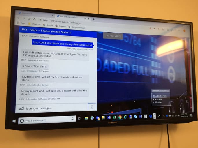 The visual representation of Lucy's responses to plain-English questions illustrates how ID Systems' voice-response product gives users information without having to manually run reports.