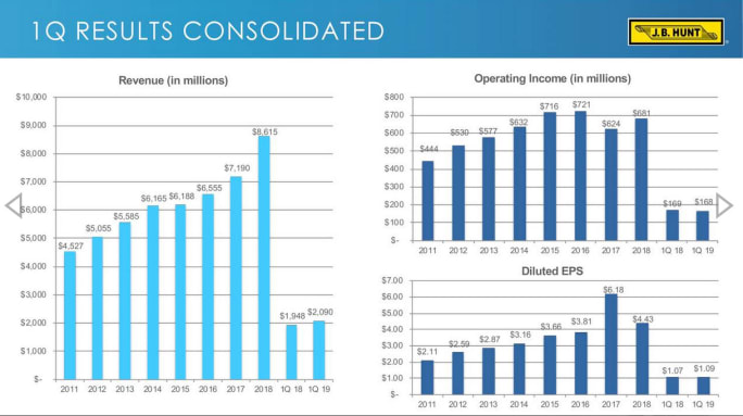 J.B. Hunt's Final Mile Services saw an increase in revenue of $26 million compared to first quarter 2018, but it also had higher network facilities costs.