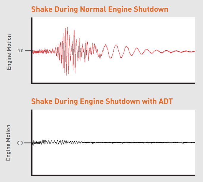 Extensive testing has shown that ADT reduces the magnitude of engine-shake during shutdown by 90%, which is when vibrations transmitted to the cabin are of greatest frequency and strength. This has the additional benefit of preventing disturbance to drivers sleeping in cabs overnight when there are automated engine starts and stops to maintain battery charge.
