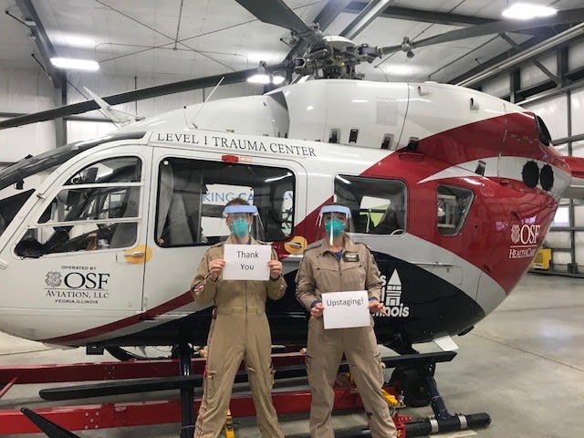 Upstaging-manufactured face shields are being used by first responders.