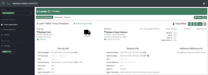 The Magnus TMS has a customer tracking portal that delivers real-time shipment visibility with dynamic ETAs.