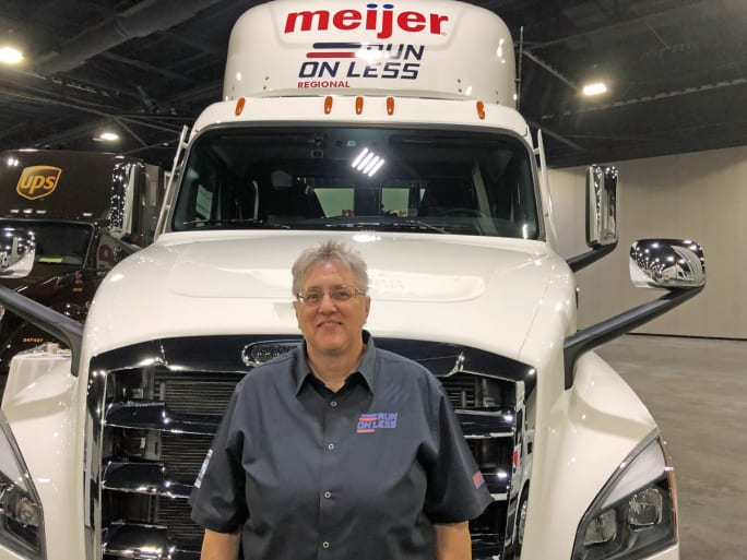 The only woman driver in the Run on Less Regional demonstration, Meijer’s Rita Bare, said that her experience driving in Michigan winters helped her immensely, but that she also learned to rely the technology on her Freightliner Cascadia. “I drove a lot like I do in the winter to boost my fuel economy,” Bare said. “That means long rollouts, lots of coasting, lots of watching traffic and trying to keep momentum going as long as possible without coming to a full stop.”