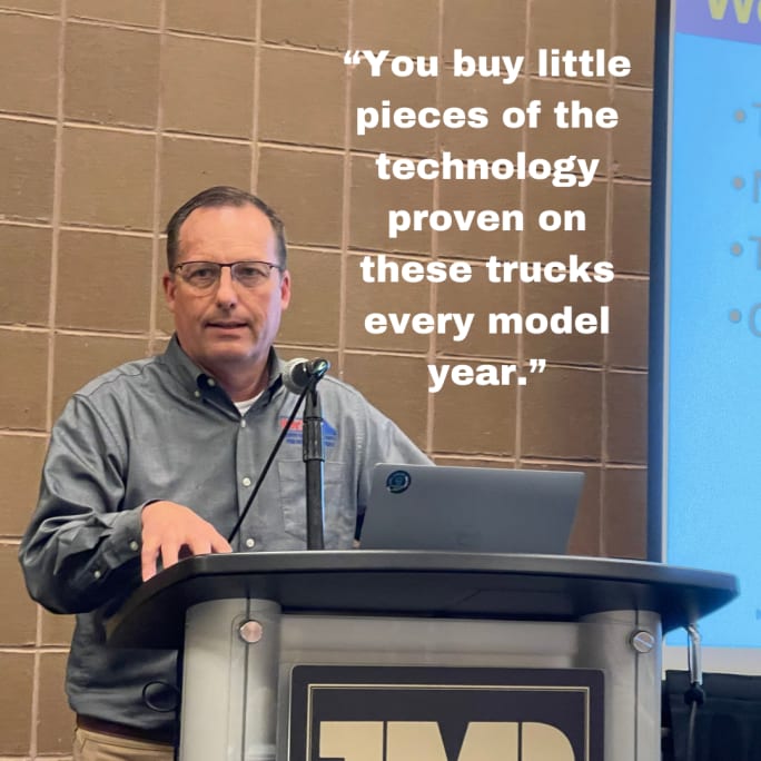 “There is a significant amount of work represented by these trucks,” Mihelic told reporters at TMC. “They represent about 10 years’ worth of research and development by all the truck manufacturers.