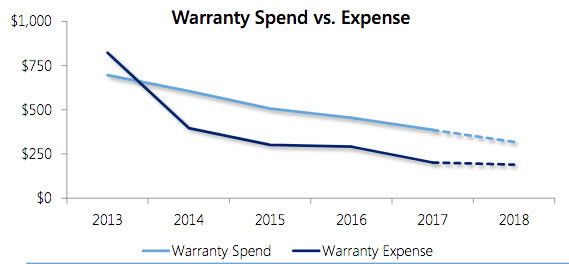 Navistar continues to make progress on the legacy issues that have dogged it. Warranty expense for the quarter (excluding pre-existing claims) as a percentage of revenue was 1.7%, down from 2.4% a year earlier. It still has some 1,100 of the MaxxForce 13 engines in inventory, but that’s down from last year.