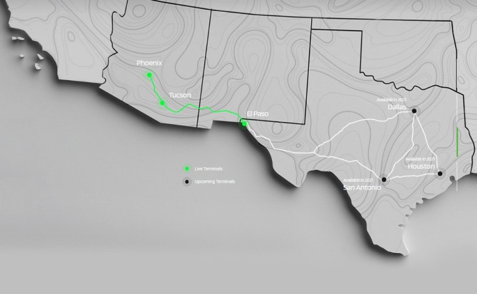 Phase I (2020-21) will offer service between the cities of Phoenix, Tucson, El Paso, Dallas, Houston, and San Antonio.