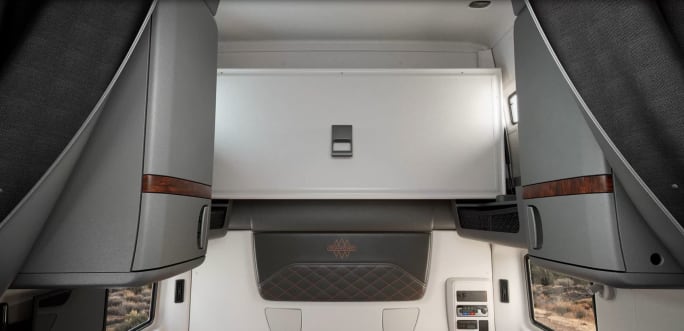 A new premium 9-inch sleeper mattress and flip-up bunk help maximize cab space on the next-gen LT.