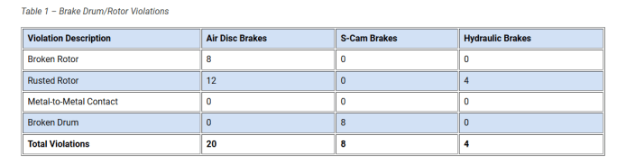 Inspectors this year put special emphasis on brake drums and rotors.