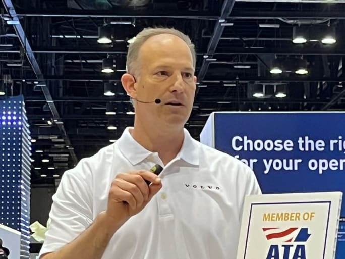 Mike Furst, VTNA’s director of contract services and leasing technology solutions, explains the benefits of the Volvo Blue Service Contract at the Technology & Maintenance Council 2023 annual meeting.
