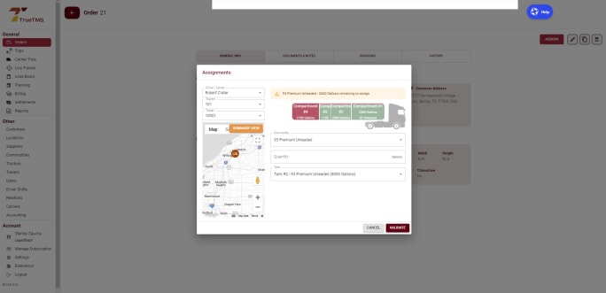 TrueLiquid TMS has interactive trailer diagrams that assist with accurate load planning to meet order requirements for volume, commodity, and compartment requirements.