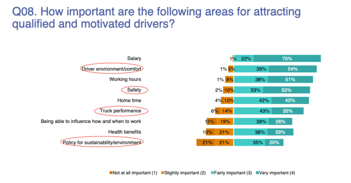 Those challenges include drivers, fuel economy, productivity, and sustainability.