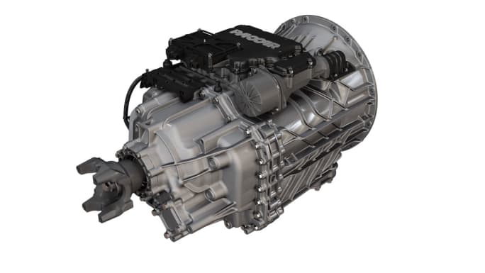 The Paccar TX-18 transmission features a high-pressure diecast aluminum casing, one-piece serviceable input shaft, helical gearing, precision lubrication system, extreme-duty clutch and an integrated clutch housing.