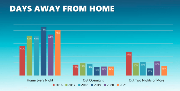 One of the reasons for that low turnover, Moore said, is average driver compensation, which came in at more than $75,000 per year for 2020. In addition, a typical workweek for drivers at these NPTC fleets is about 42.4 hours. And the majority, 71% in 2020, are home every night.