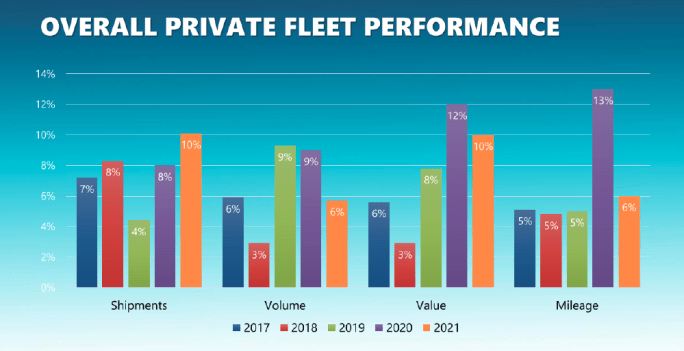 Shipments were up but mileage was down, as private fleets operate more efficiently and move closer to customers.