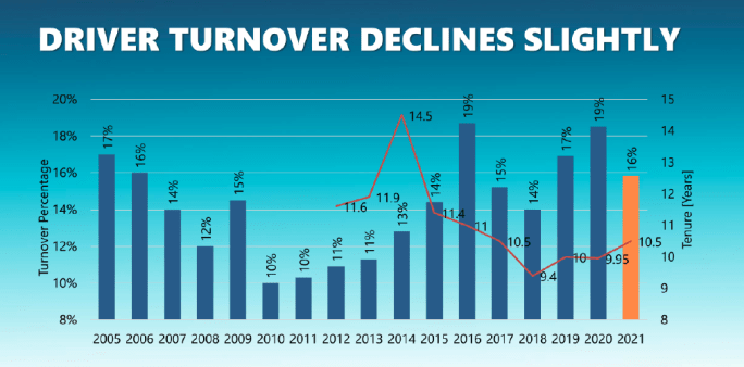 Driver turnover in the private fleet world continues to be less than in the for-hire fleet world.