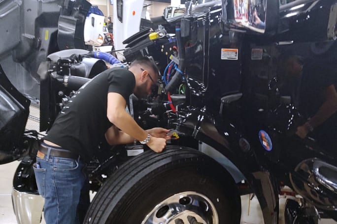 A Rush Truck Centers technician competes in the annual Skills Rodeo.