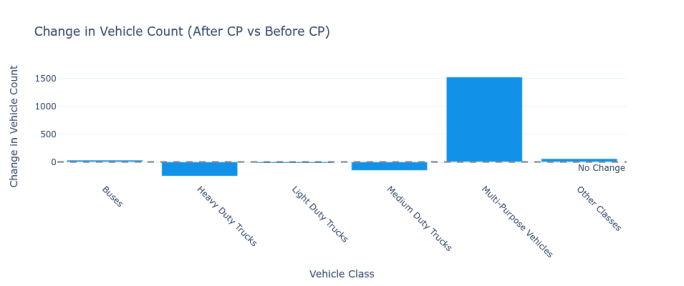 Fewer Large Trucks, More Multi-Purpose Vehicles: The data showed a noticeable decrease in the number of medium- and heavy-duty trucks entering the congestion pricing zone, with a corresponding increase in smaller multi-purpose vehicles, such as vans, SUVs and pickups.