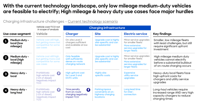 The study found that while medium-duty vehicles will face fewer roadblocks, economic and operational constraints make electrification very challenging for the heavy-duty segment.