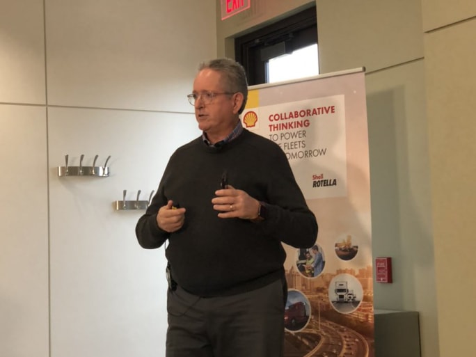 Shell’s first guest speaker was Allan Rutter, freight and investment analysis head at the Texas A&M’s Transportation Institute, who spoke about what autonomous technology will mean for commercial transportation in the future.