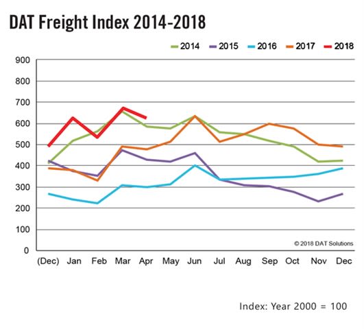 “May and June are typically peak season for agriculture and construction, and retail freight appears to be expanding, as well,” he said. “Seasonal demand should keep rates high at least through the end of the second quarter.