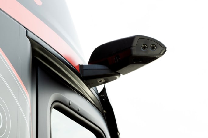 Stoneridge says the aerodynamic shape of its MirrorEye camera sensors gives trucks a three percent fuel economy boost.