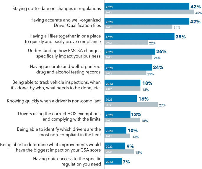 Comments from respondents regarding the most challenging aspects of their job included, “compliance and keeping up with rule changes,” and, “ensuring that all vehicles are compliant at any given time.”