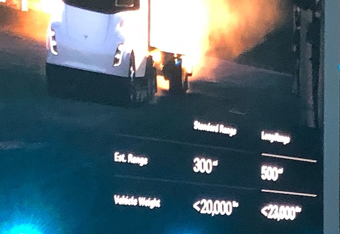 He then tiptoed around the tare weight of the Semi. Without ever mentioning a number, he referred to a slide on a screen comparing the standard and long-range versions of the truck.