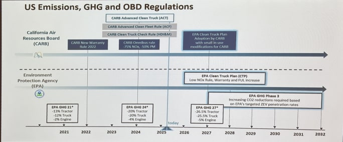During another TMC session, "Catching Up With CARB," a slide showed the complexity of the overlapping EPA and California emissions regulations.
