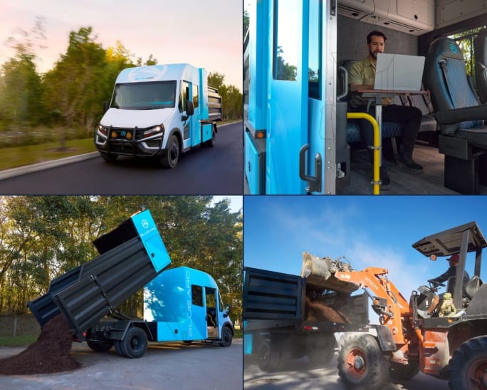 The EV work truck features lithium-ion liquid-cooled battery packs and an optional 450-watt-hour integrated solar roof package. It is optimized for Level 2 and DC fast charging with an accelerated charge time of 2-6 hours and a 200-plus mile range. The lightweight aluminum dump body is designed by the company’s DuraMag brand and features a payload capacity ranging from 6,000-10,000 pounds.