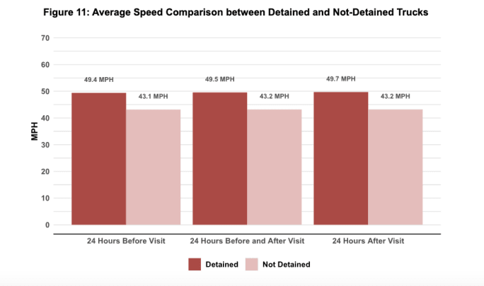 Trucks also drove faster on trips to facilities where they were detained, indicating that truck drivers know which firms and facilities will likely detain them.