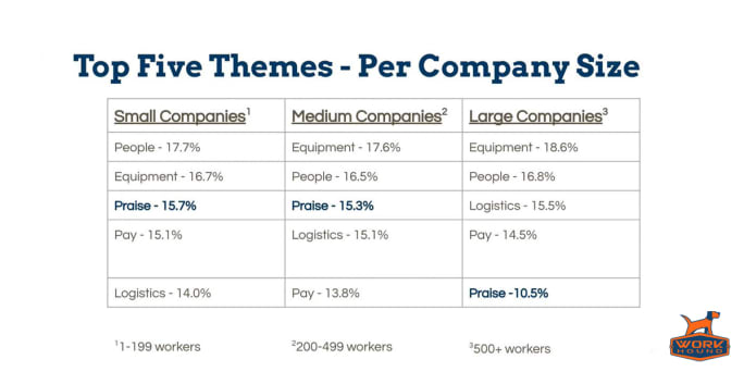 The report revealed that drivers tend to prefer smaller companies (under 500 workers), where drivers, techs and office workers reported more positive comments, more praise, and reported a higher satisfaction with their career