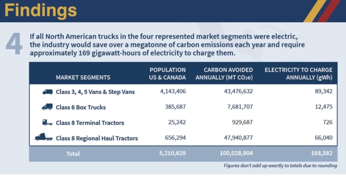 “That's about 25 coal fired power plants that could be eliminated if all of those trucks went battery electric,” Roeth said. “And we believe all the trucks in this population are electrifiable today.”