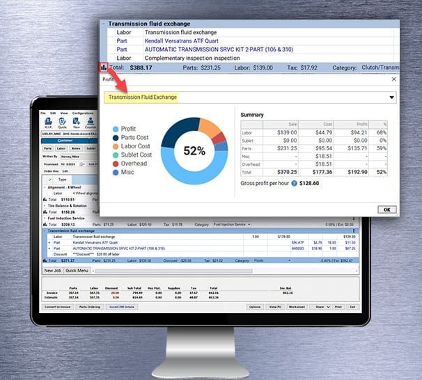 Mitchell 1 job view screens allow shops to more easily create invoices.