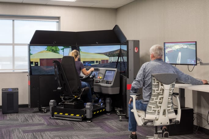 The new amenities building includes a state-of-the-art truck driving simulator for students earning their Commercial Driver’s License through Prime’s official training program.