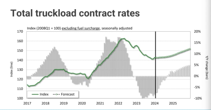 FTR expects truckload rates, both spot and contract, to start creeping upwards.