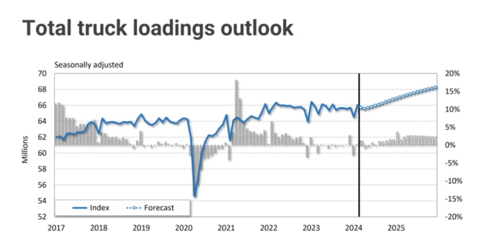 “As we look out, growth is not awesome by any stretch of the imagination as we move through 2024 and into 2024,” he said. If this trend continues, “the amount of freight is somewhat constrained in this environment.”