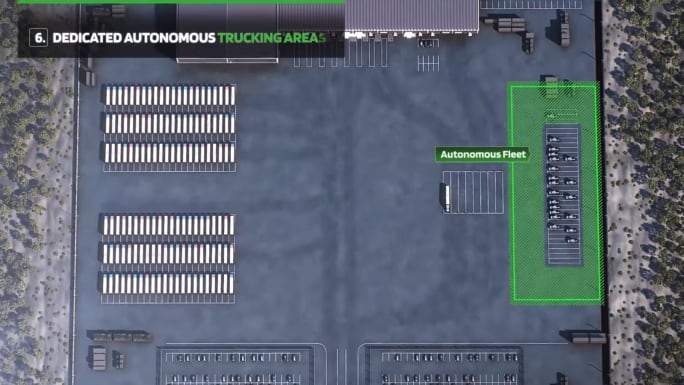 In a new video explaining how its Autonomous Freight Network works, TuSimple explains that every terminal has a clearly defined area on the property dedicated to autonomous trucking operations. Within these areas are launch pads and landing pads. A launch pad functions as the entry point to a digital map, connecting the terminal to the AFN. This allows the truck to be driven autonomously from one terminal to another.