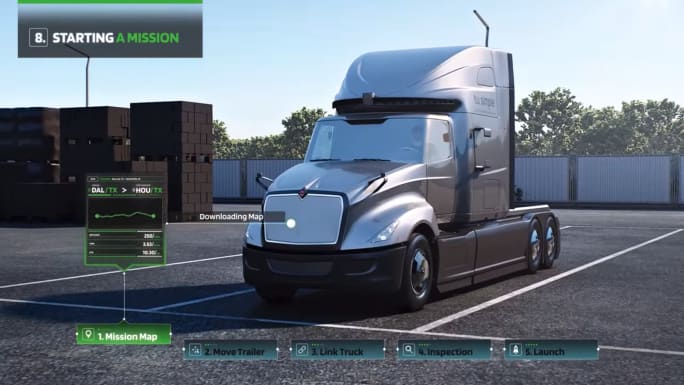 A "mission map" is downloaded into the truck. A launch pad serves as an entry point into TuSimple's Autonomous Freight Network.