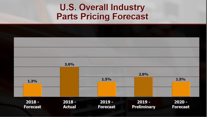Expect higher parts prices this year as the demand for aftermarket truck parts continues to grow, according to MacKay and Co. projections presented at Heavy Duty Aftermarket Dialogue.